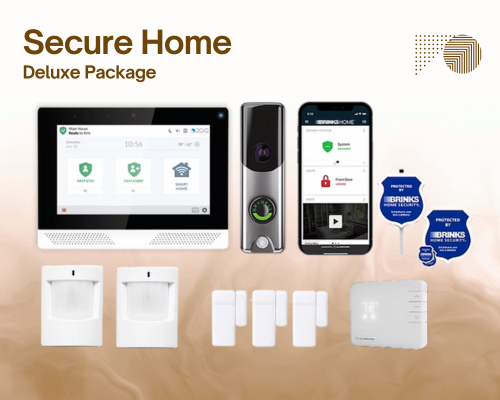 The Secure Home Deluxe Package is a fully integrated wireless smart home security system designed to provide advanced protection, convenience, and automation for modern homes. Powered by Brinks Home Security–level technology, this package combines professional-grade security equipment with smart home features you can control anytime, anywhere through a free mobile app.